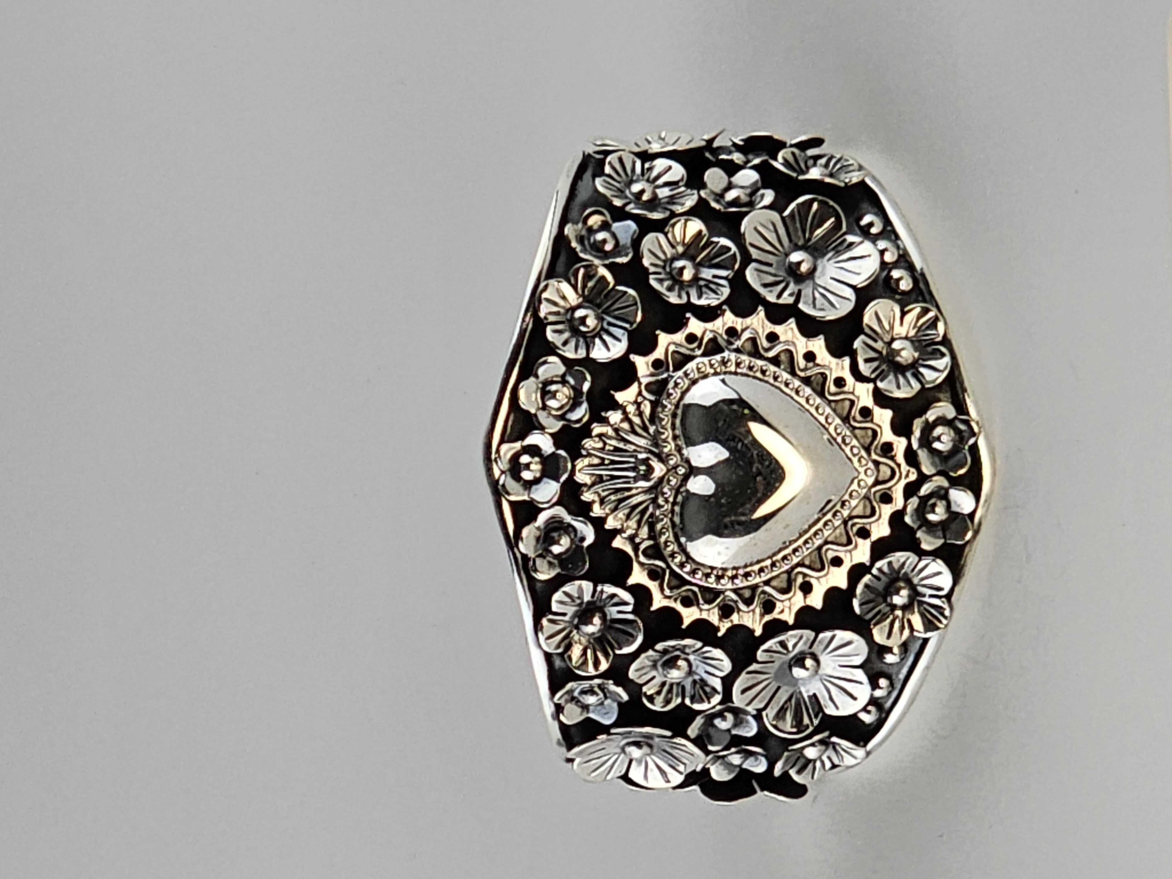 handmade heart Bracelet with flowers and 925 silver