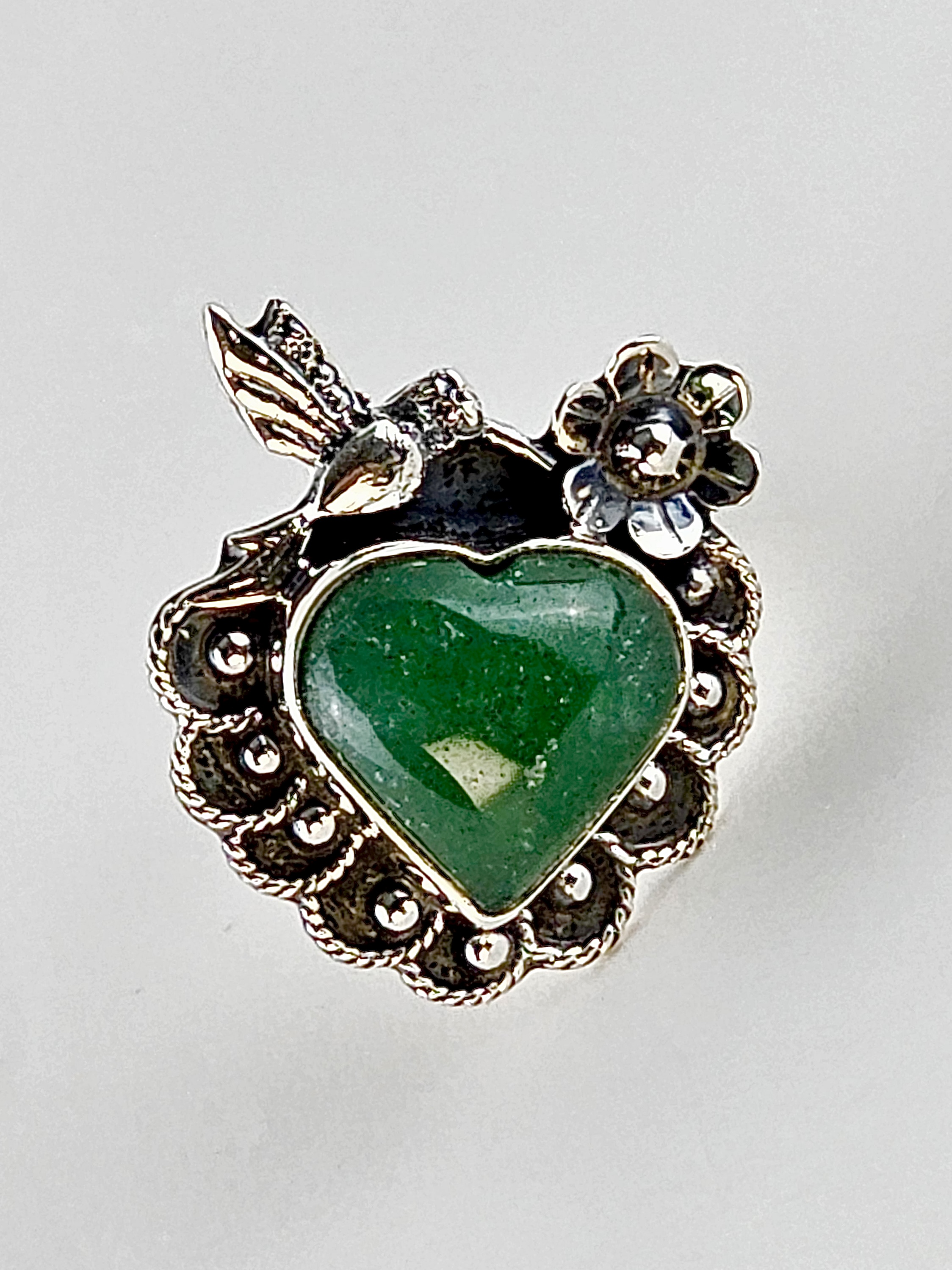 Take flight with this stunning 925 Silver hummingbird ring, this beautiful piece captures the whimsical spirit of these tiny, iridescent birds, and the green aventurine is a calming and balancing stone believed to promote emotional peace, reduce stress and anxiety, and boost the immune system.